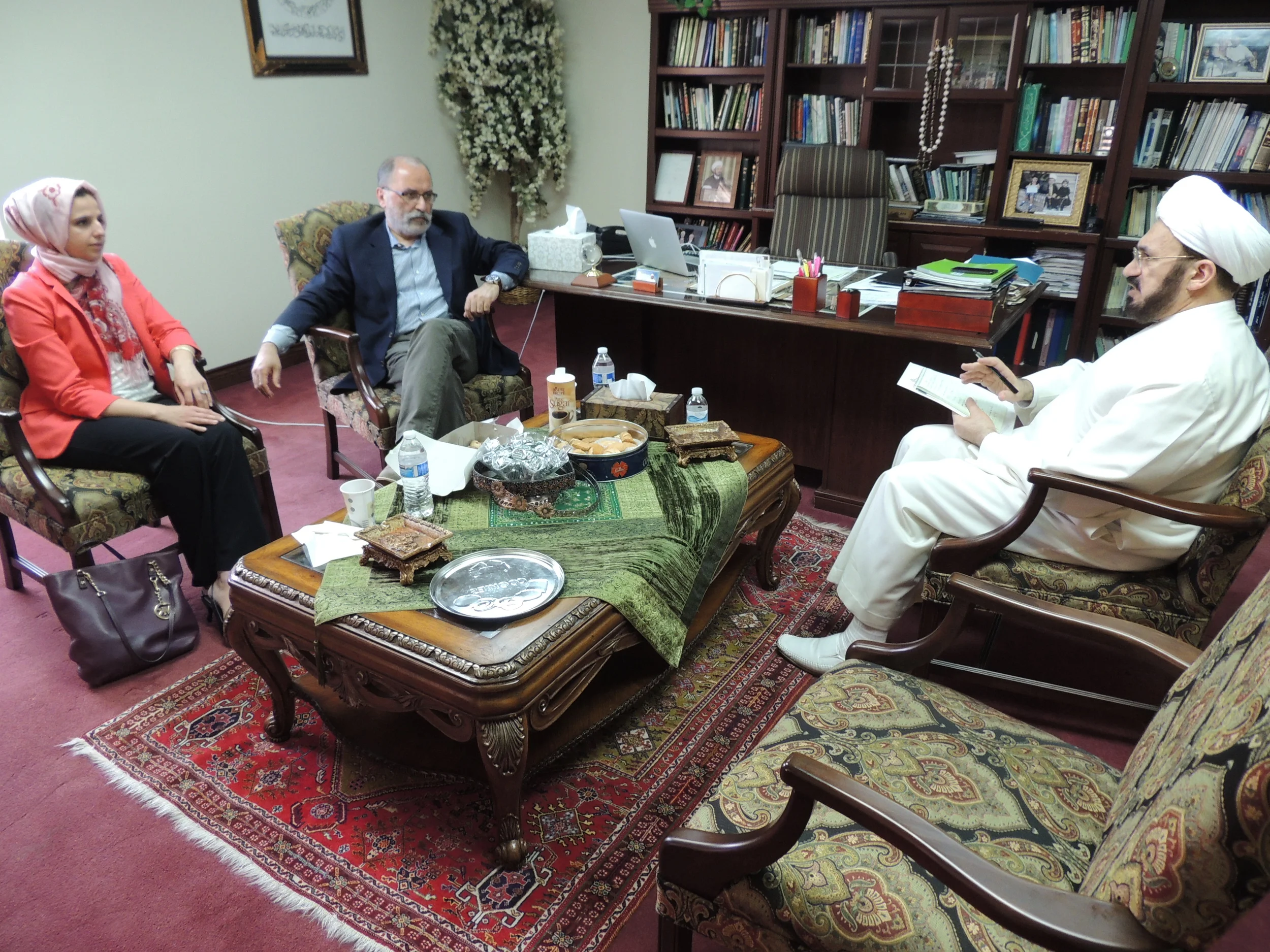 May 23, 2014: ACCESS Executive Director, Mr. Hassan Jaber and Mrs. Nadia Tonova the Director of the Arab American National Network met with Imam Mohammad Ali Elahi to discuss the new developments in the outreach of ACCESS and its efforts to build relationships and partnership on both local and national levels.