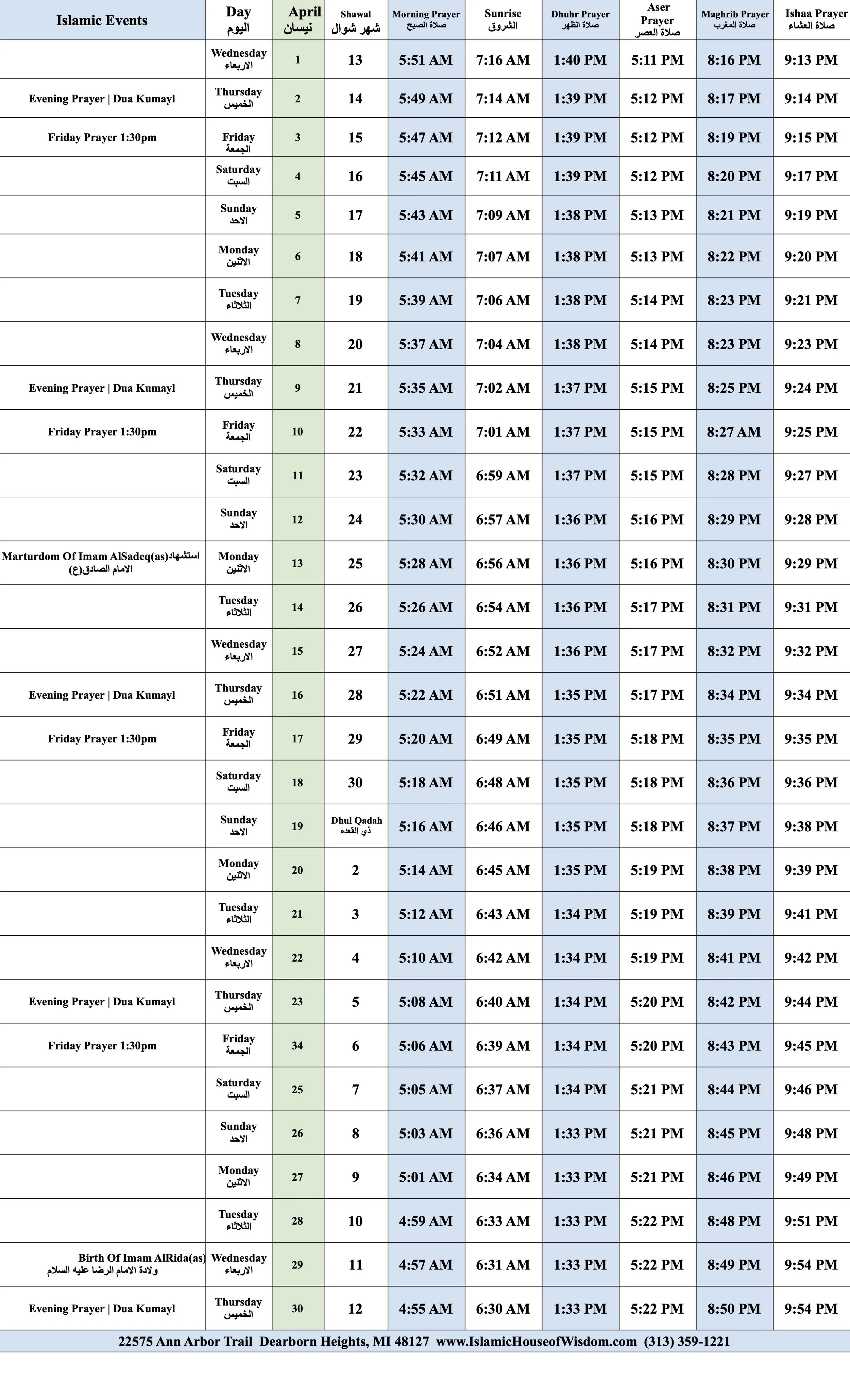 Prayer Schedule